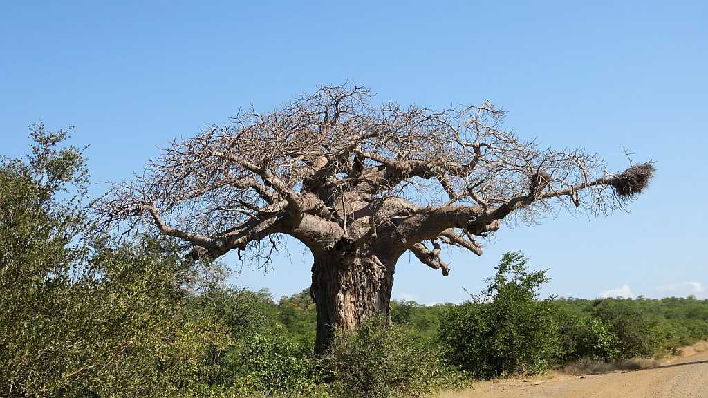 Then we move on to the Mopani rest camp. The mopani bush, that covers most of the veld from Olifants to north of Shingwedzi, is not my favourite and becomes kind of boring after long distances. But closer to the rivers there are exceptions. The Mopani rest camp is situated on a dam and its restaurant and some of the guest houses have a beautiful view of it. We spend a short while here. There is also a beautiful baobab tree just inside the camp entrance.