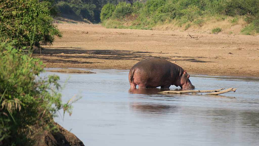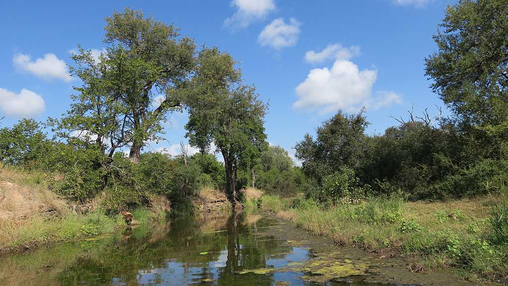 We depart but first make a stop on the bridge over the Letaba river just outside the camp. In the middle of this long bridge you are allowed to disembark from your vehicle – it is easy to spot any dangerous animals that may approach you and it makes a good viewing point directly above the river. Nothing special here today.