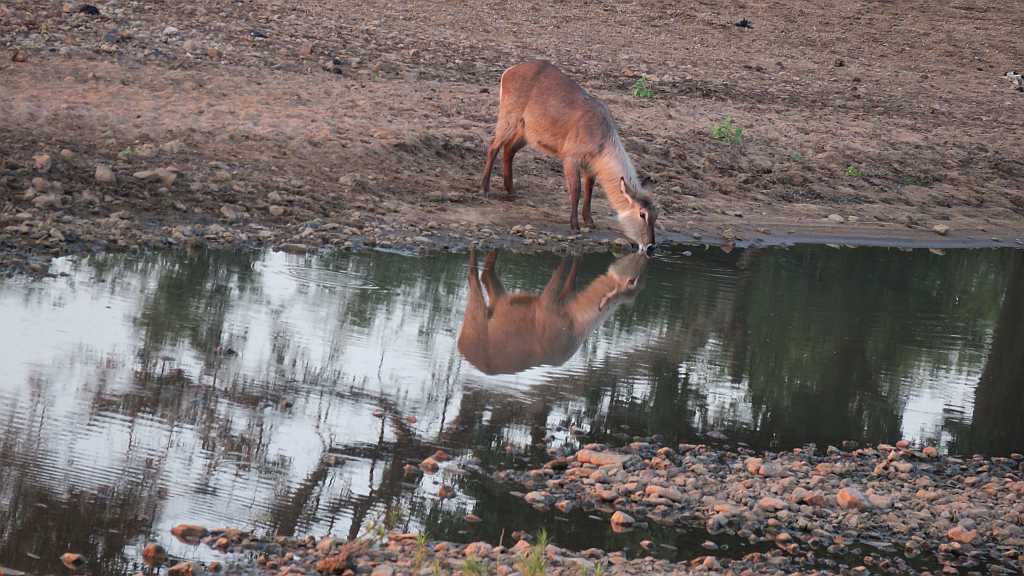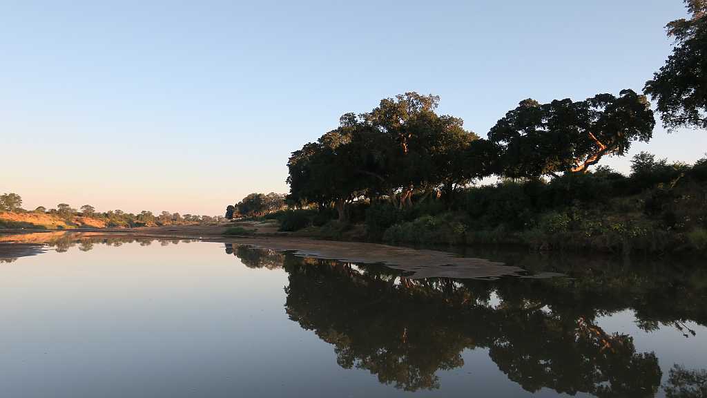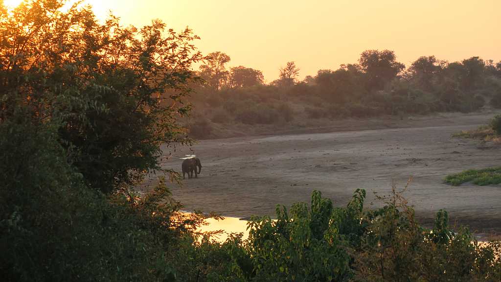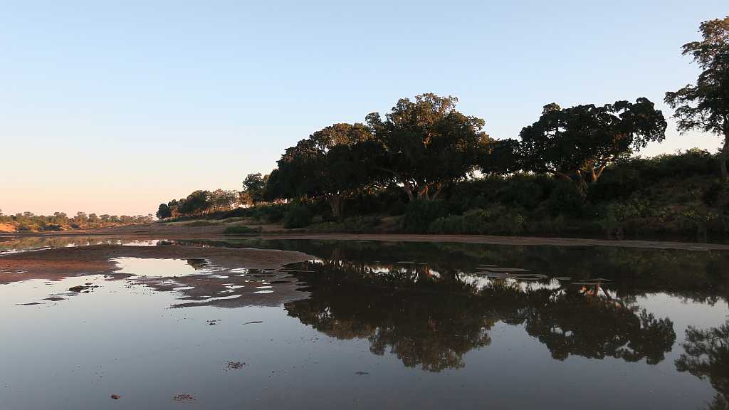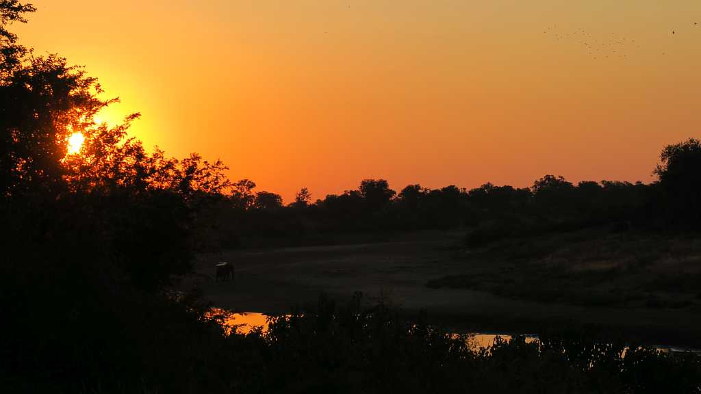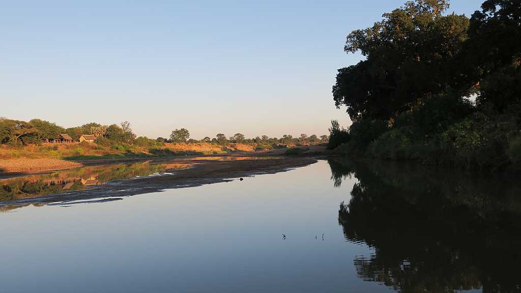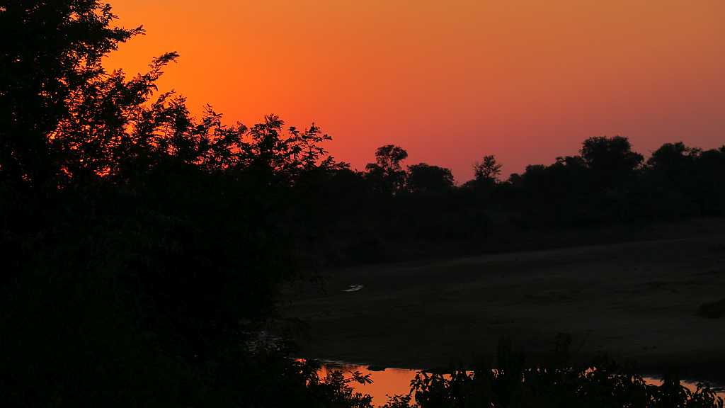 The road takes us far around the camp, but we find no lions (we heard later that we were going in the right direction but missed them). We cross the Shingwedzi river just behind the camp and run into a troop of baboons sitting leisurely on the river bank next to the low water bridge admiring the sunrise. Interesting how much we are alike! We return to the camp for breakfast, seeing nothing more than the usual elephants, water buck and the like (sigh, we are spoiled by a week in the Kruger). We spend some time during the day to explore the camp and facilities and chatting with the camp manager. We also take a long time to observe the wild life on the other side of the Shingwedzi river from the camp’s lookout deck.