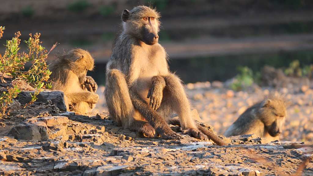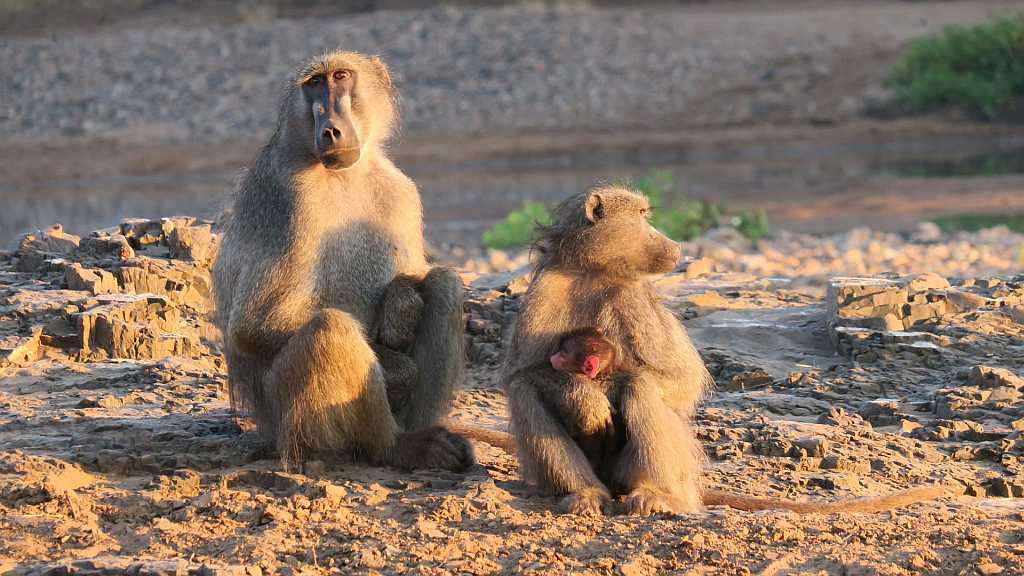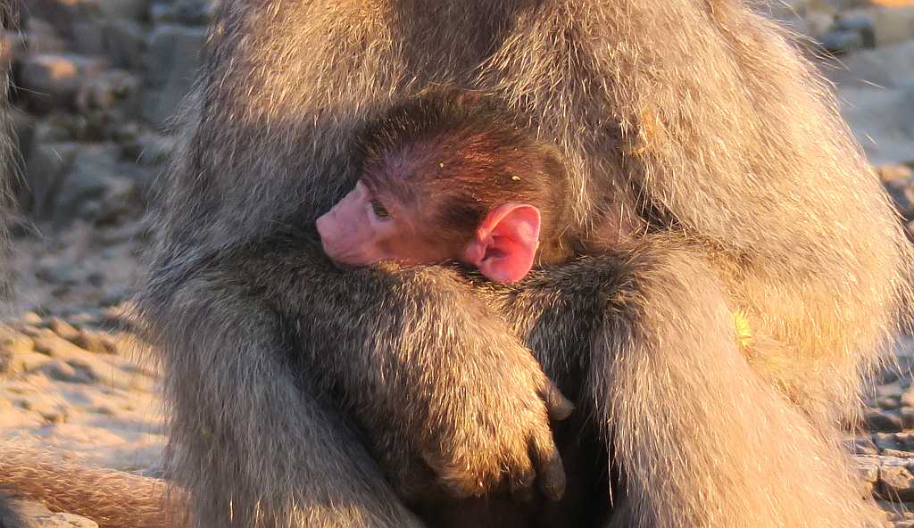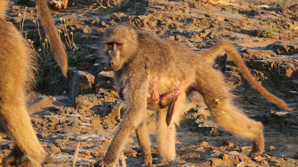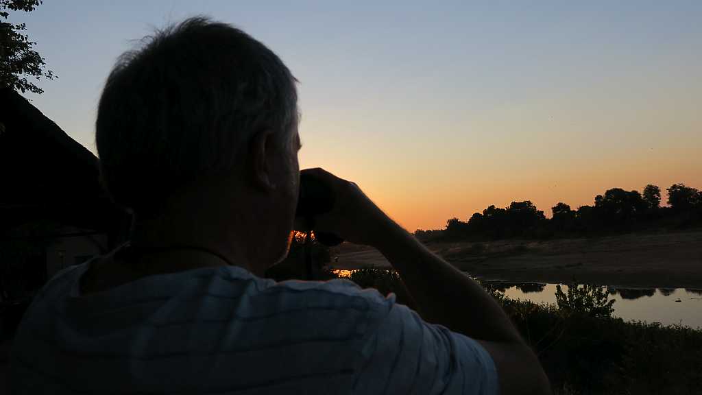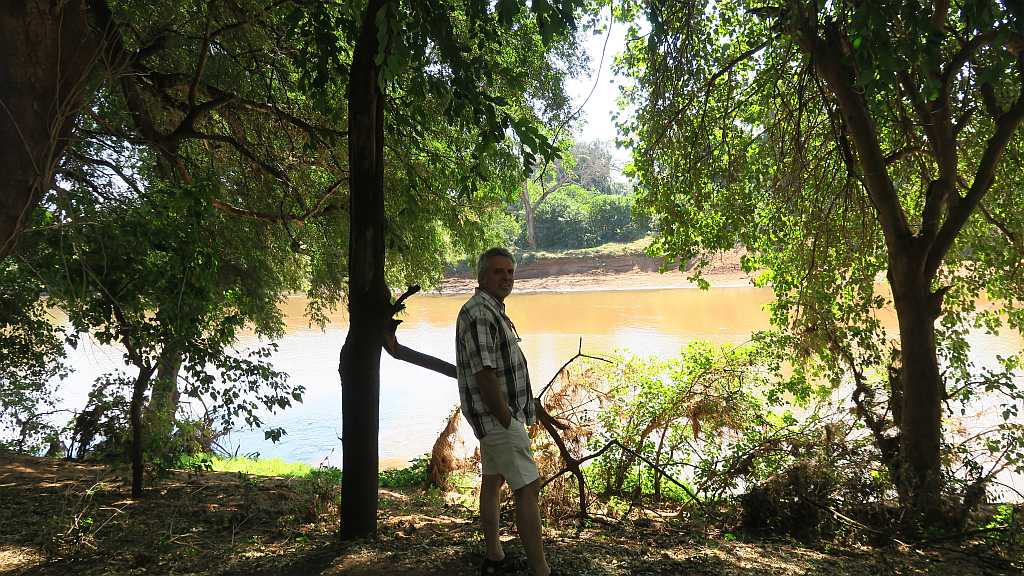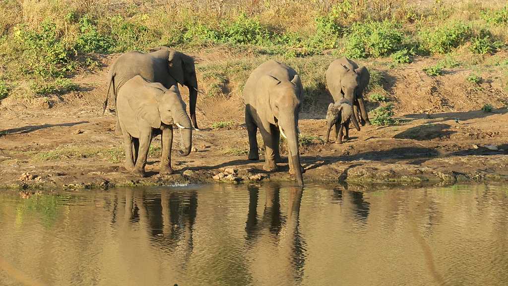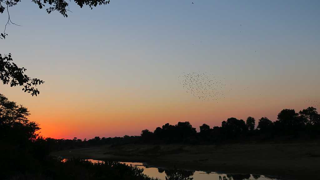 The road takes us far around the camp, but we find no lions (we heard later that we were going in the right direction but missed them). We cross the Shingwedzi river just behind the camp and run into a troop of baboons sitting leisurely on the river bank next to the low water bridge admiring the sunrise. Interesting how much we are alike! We return to the camp for breakfast, seeing nothing more than the usual elephants, water buck and the like (sigh, we are spoiled by a week in the Kruger). We spend some time during the day to explore the camp and facilities and chatting with the camp manager. We also take a long time to observe the wild life on the other side of the Shingwedzi river from the camp’s lookout deck.