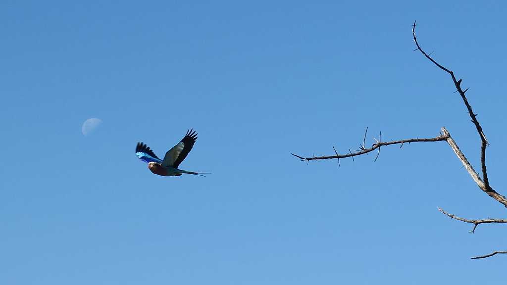On our last day we are going to places we have not been before. Firstly, we are driving up to the Punda Maria rest camp which is popular amongst birders. It is a very small camp with minimal, but sufficient, facilities. The closer you get to Punda Maria the more interesting the environment becomes – more big trees and less mopani. After coffee there, we depart on a back road to the Pafuri picnic site. We see impressive baobabs on the way. One thing that bothers me, is a specific site next to the road, where some or other alien plant species has started to invade the veld to the extent that even some sizable trees are fully overgrown. I am aware that SANParks and the Honorary Rangers are attending to this problem in other parts of the Kruger, resources permitting.