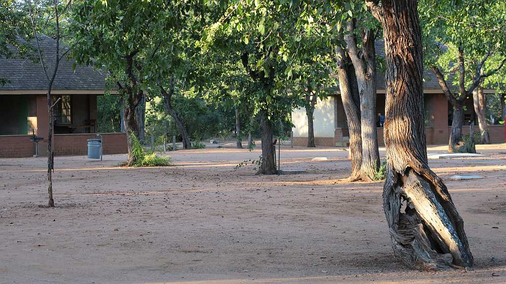 We are now on the last stretch to the Shingwedzi rest camp where we will stay for 3 nights. The last couple of kilometers to the camp gate is along the Shingwedzi river and you are bound to find elephant, leopard, hyena and the like here. We check in and are quite surprised to find that our bungalow is one of the modern ones – also with a thatch roof but with a rectangular floor outlay. Our beds have been made with a special personal touch which includes a impala lily! The camp is managed well – the large open areas between the bungalows are raked on a daily basis and our kettle, that did not work, was replaced immediately.