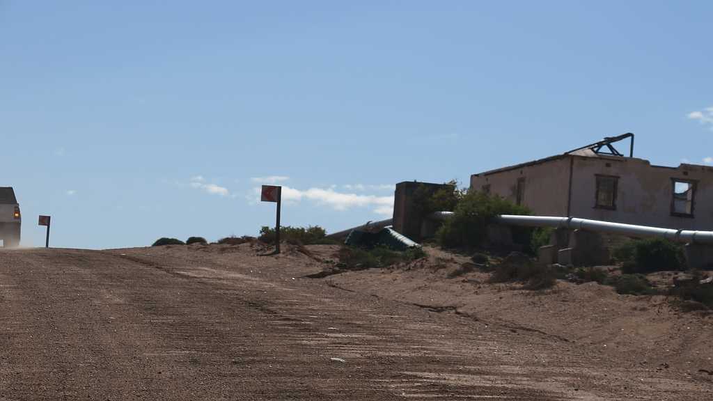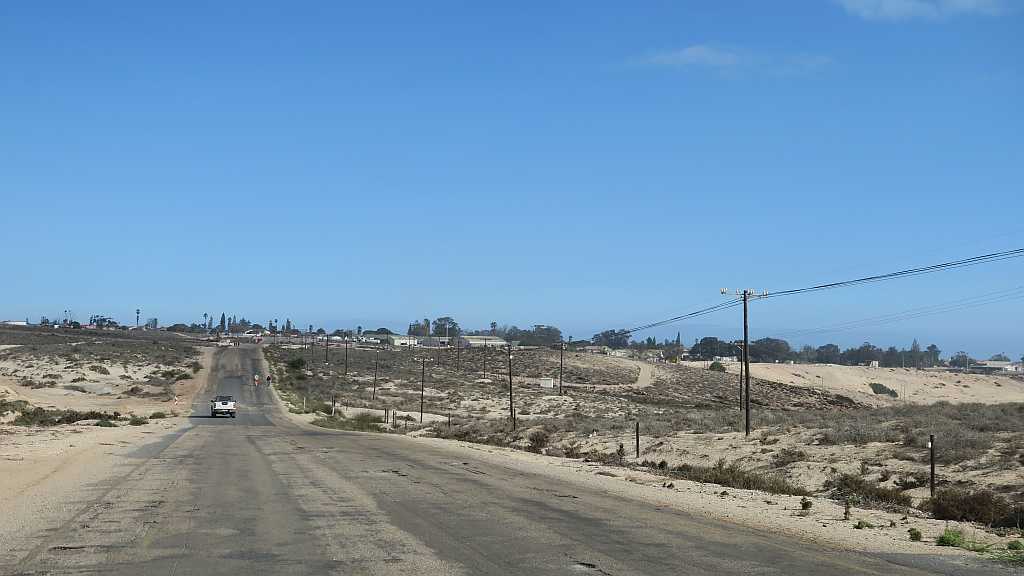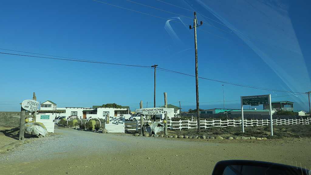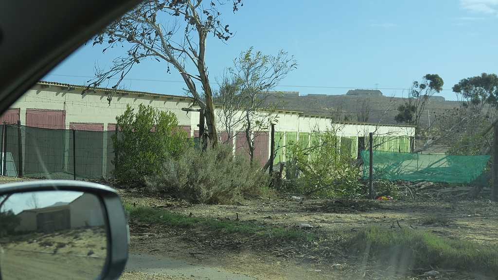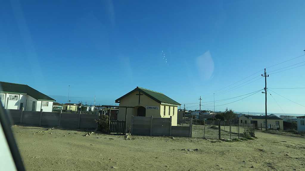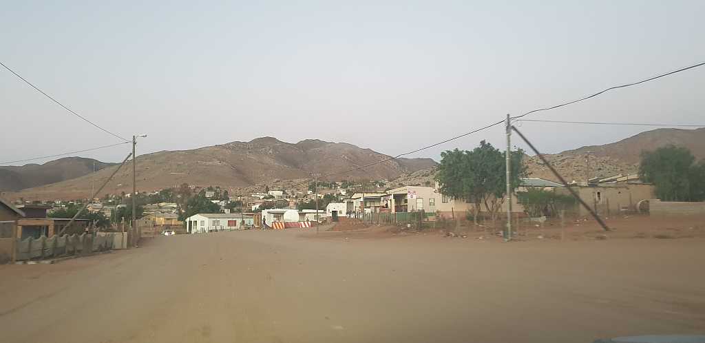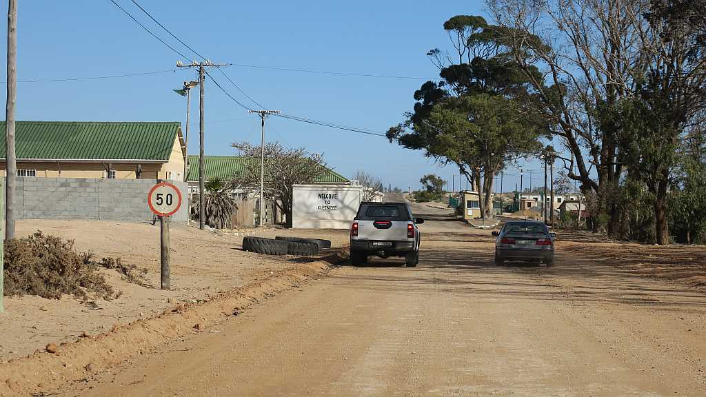 As we approach Kleinsee, we can see it must have been a town with high security. There were gates controlling access to the town and garages at the entrance where you were supposed to leave your car. People leaving town were also thoroughly searched. The town belonged to the De Beers diamond company and boasted restaurants, a hospital, a golf course and other cultural activities. But, as the mining yield dwindled, De Beers sold everything and left. Today, Kleinsee seems to be neglected and very quiet although you do see someone here and there.