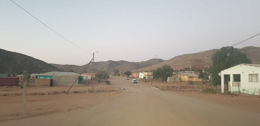 On our way back to Kleinsee, we take a right turn on a shortcut to Komaggas. The dirt road is slippery in places due to the recent rains but I always drive slowly on dirt roads, so it doesn’t bother us. Komaggas is a beautiful little town with lots of character. Its community was also badly affected by the scaling down of the diamond mines. It doesn’t look like any mines were erected in the area, so the town and surroundings do not look industrial at all, but very rural. It is already dark when we arrive back at Naries.