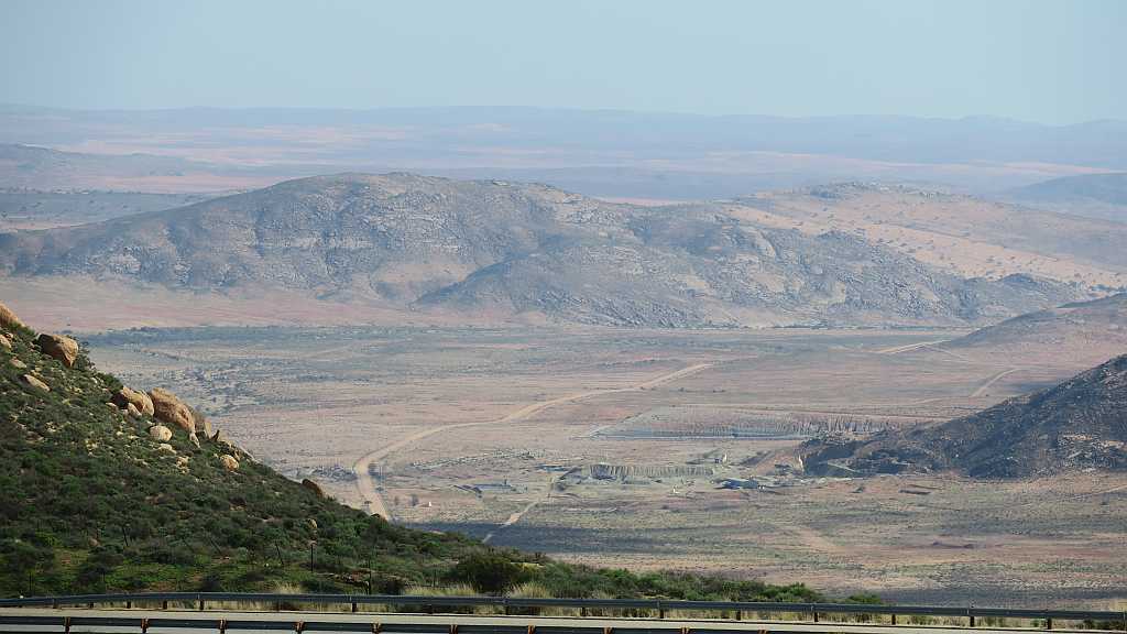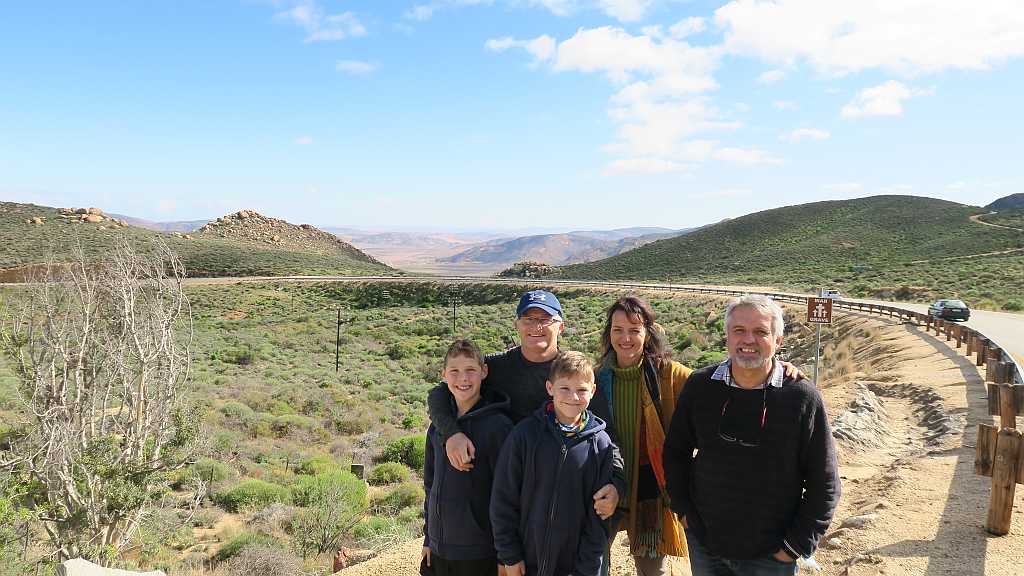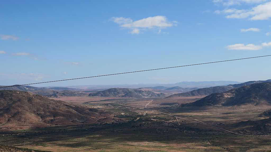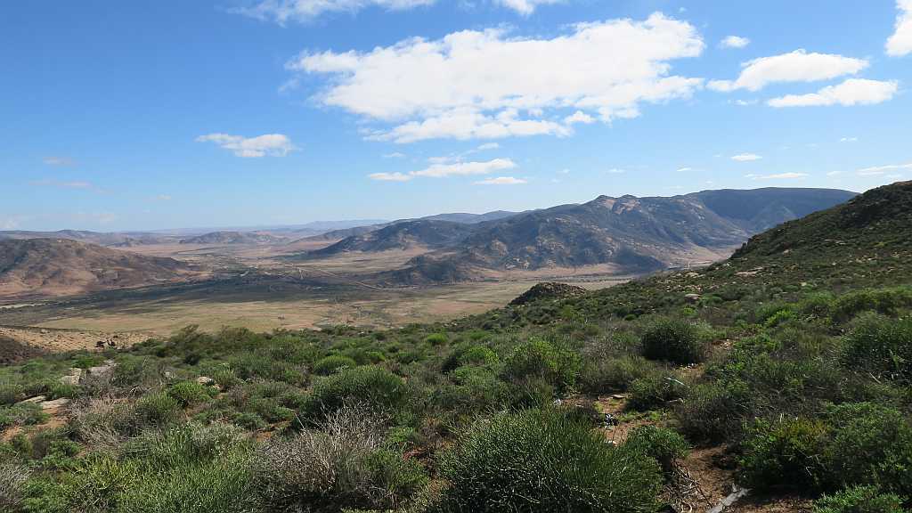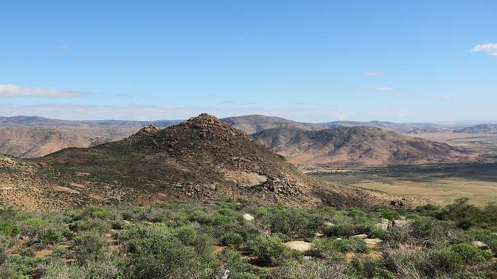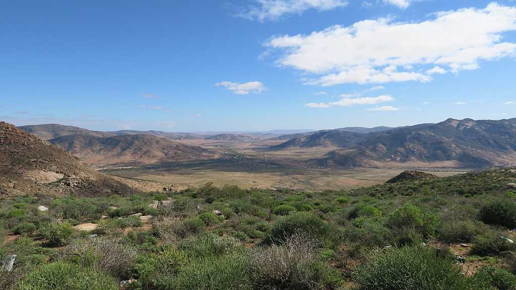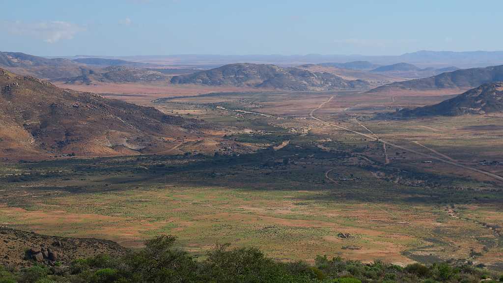 Halfway down the hill we stop. There is a sign indicating a war grave. A local farmer collaborated with the British during the Second Anglo-Boer War as a Namaqualand Border Scout. He was informing the Brits on the positions of Boers in the area. He was executed and buried here by Boer supporters in 1902.
