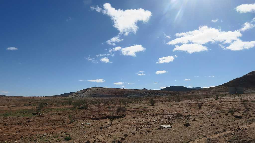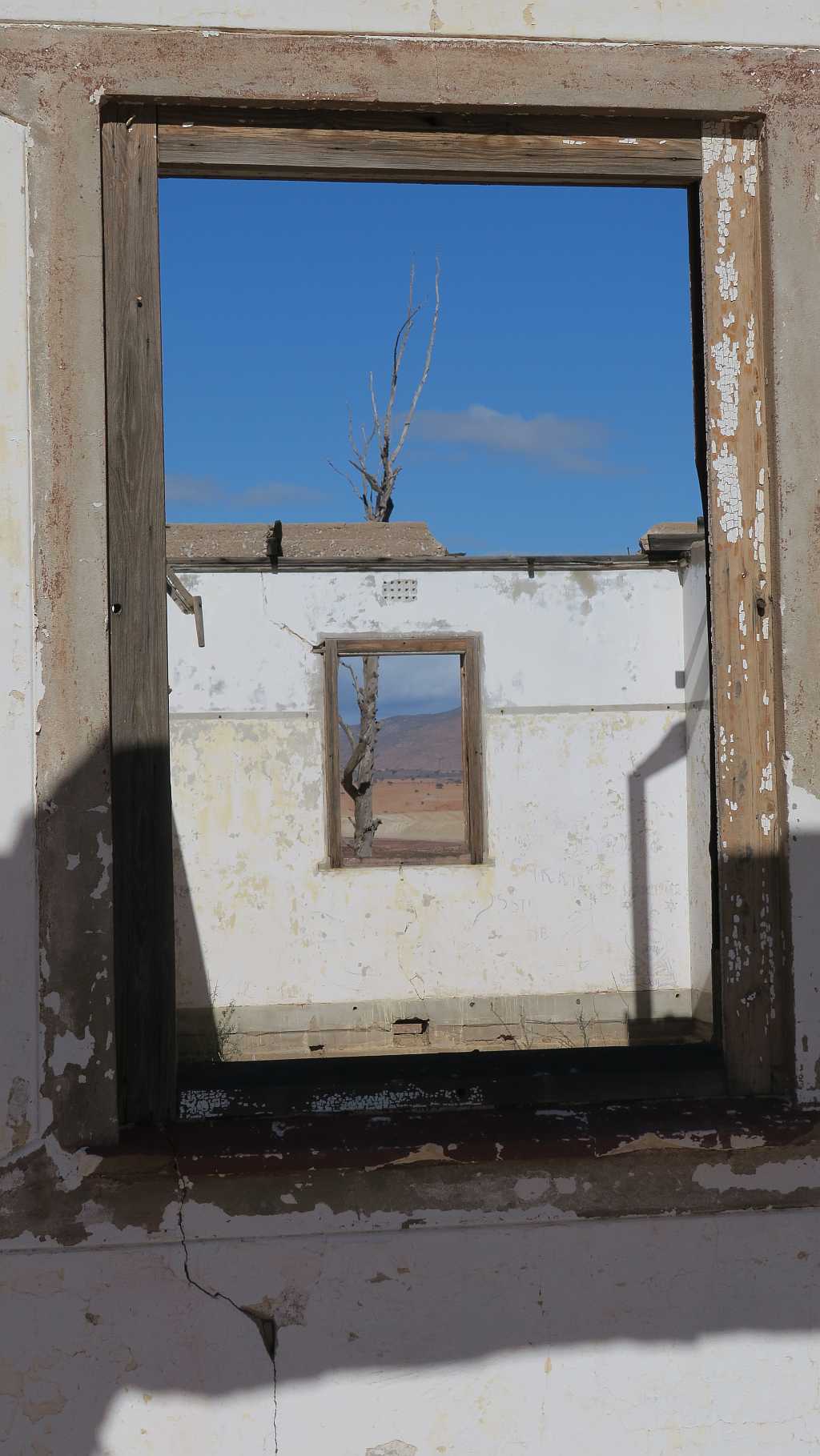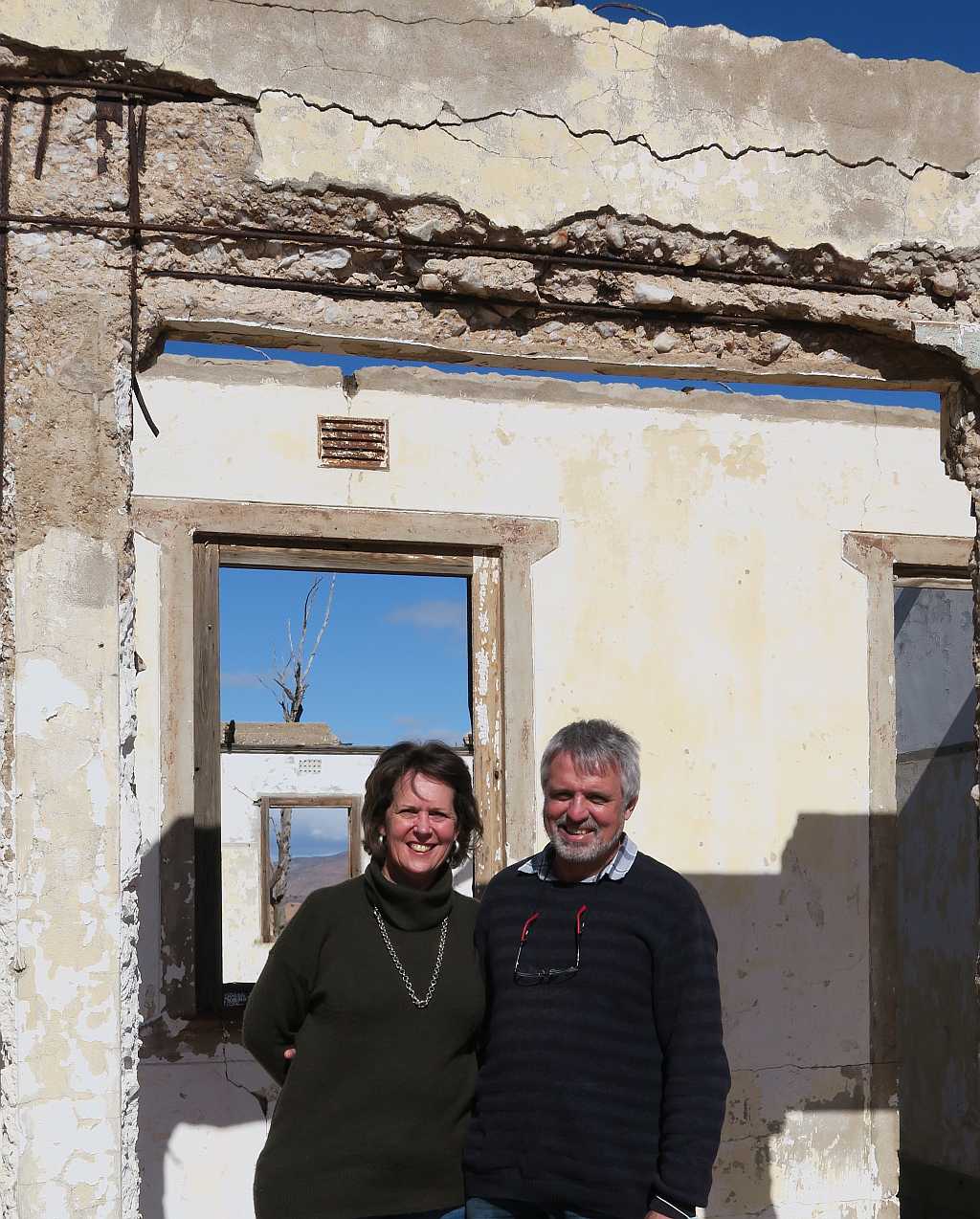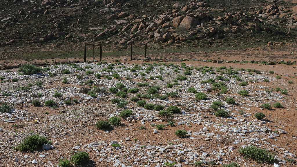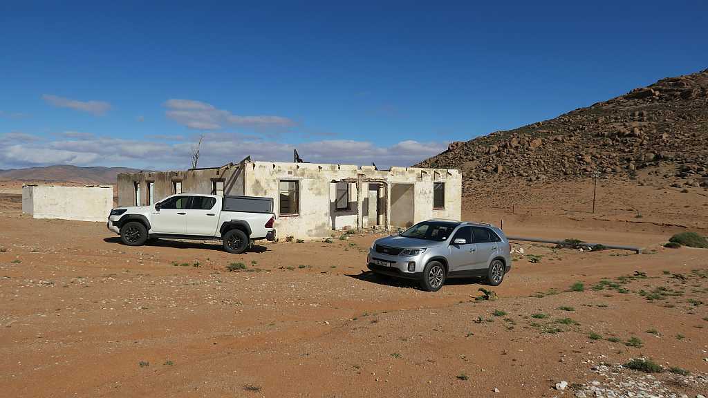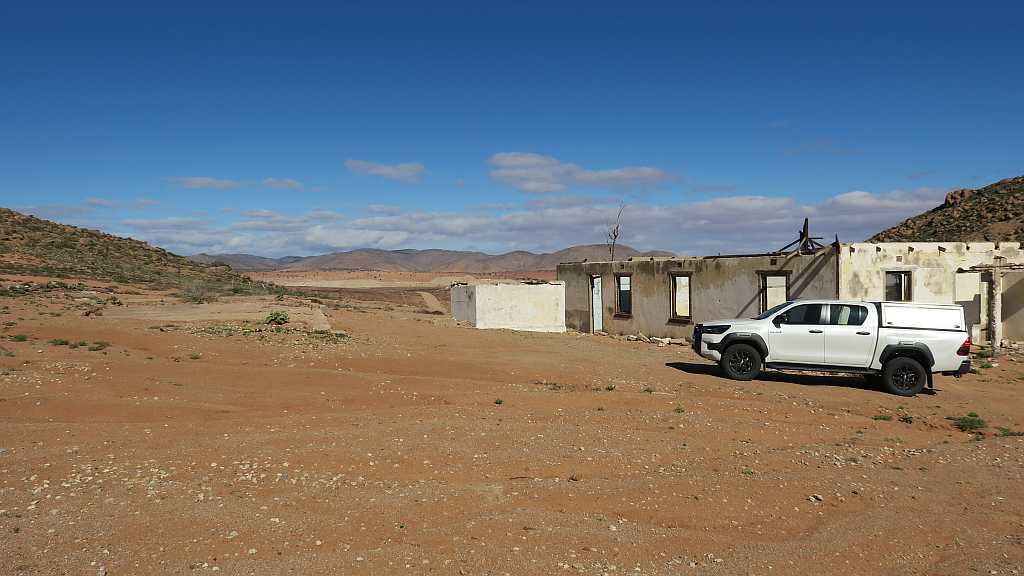 In the middle of nowhere, as the road to Kleinsee rises slightly to cross a neck in the hill, we come across the ruins of the dilapidated Wolfberg police station that, years ago, were erected to prevent the smuggling of diamonds from the Kleinsee side. It must have been a very boring job – the policemen built a coat of arms on the side of the hill using rocks. It is still there today.