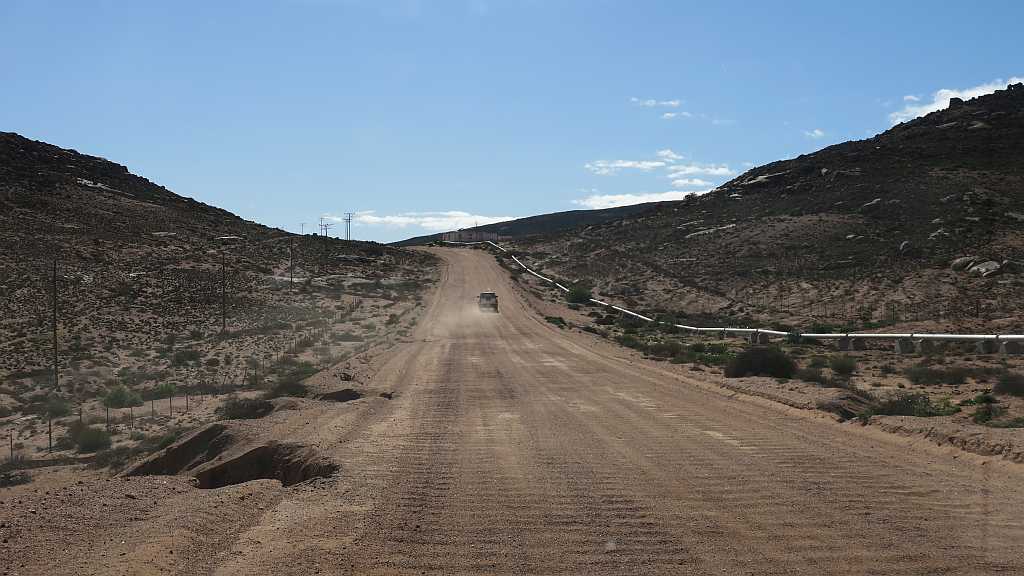 Danny is our tour guide today. He grew up on Naries his dad bought many years ago. We leave the farm, turning towards Kleinsee on the West Coast which is some distance off. The road is still tarred here going down the escarpment but it becomes a gravel road at the bottom.