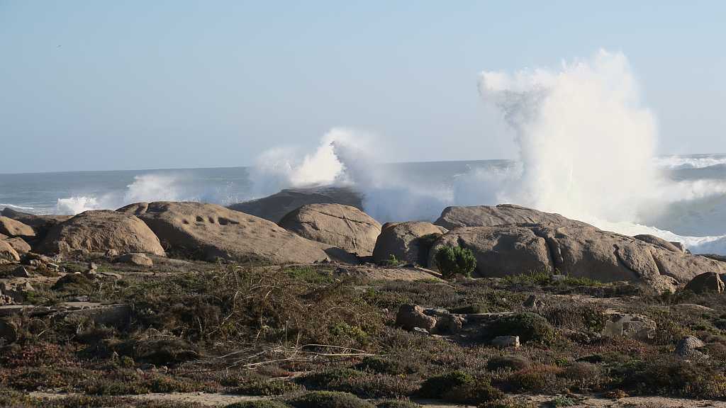 We drive through and find our way to Hondeklip Bay (it is named after a rock that resembles a dog). This looks like a fishing village right on the beach. Breakers burst into fireworks of drops and mist over the rocks. The brand new police station probably has the best location of all and right in front of its front door is the “hondeklip”. It is a rock about roof height that resembles a sitting dog if you look at it from the correct angle. Even if a lot was happening in town, we cannot explore it because we are running really late and we are only halfway in distance from Naries!