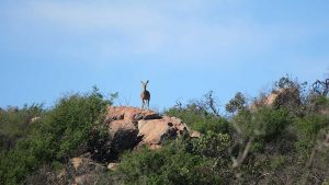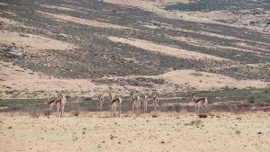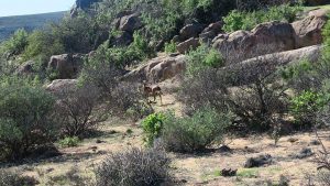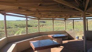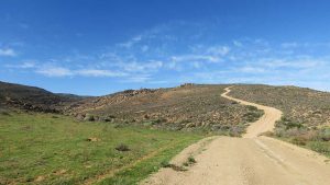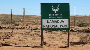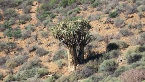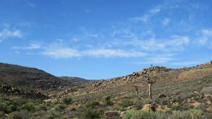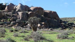 We enter the park. This route is marked as 4×4 only. Initially the road is just very corrugated but then becomes smooth again. We see some animals here and there and then we reach the Koeroebees ruins (Nama for “to dig for water”) where farmers lived years ago. SANParks have erected a picnic site on the terrain. From here the road becomes steeper and more uneven as we progress, and then we reach a point where a normal sedan car will not be high enough to make it. Here SANParks have cemented the surface of the road – when it rains it will be too slippery and steep if they didn’t do this. Approaching the main camp at the top of the mountain, the veld turns green with many little flowers everywhere. The park is a favourite site to observe flowers in spring.