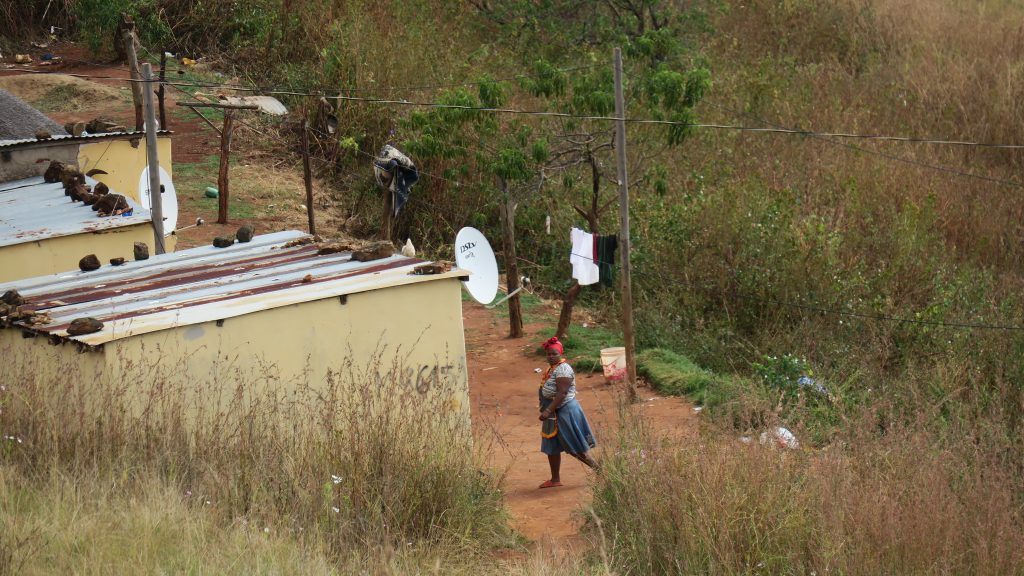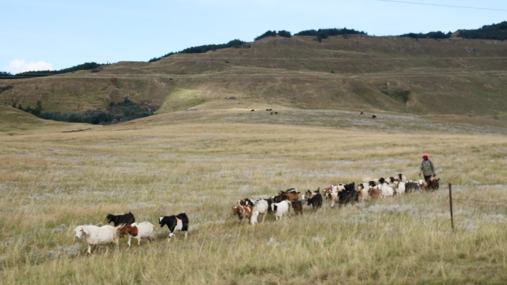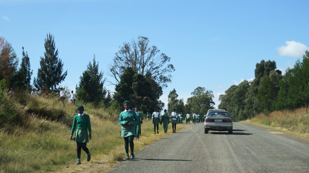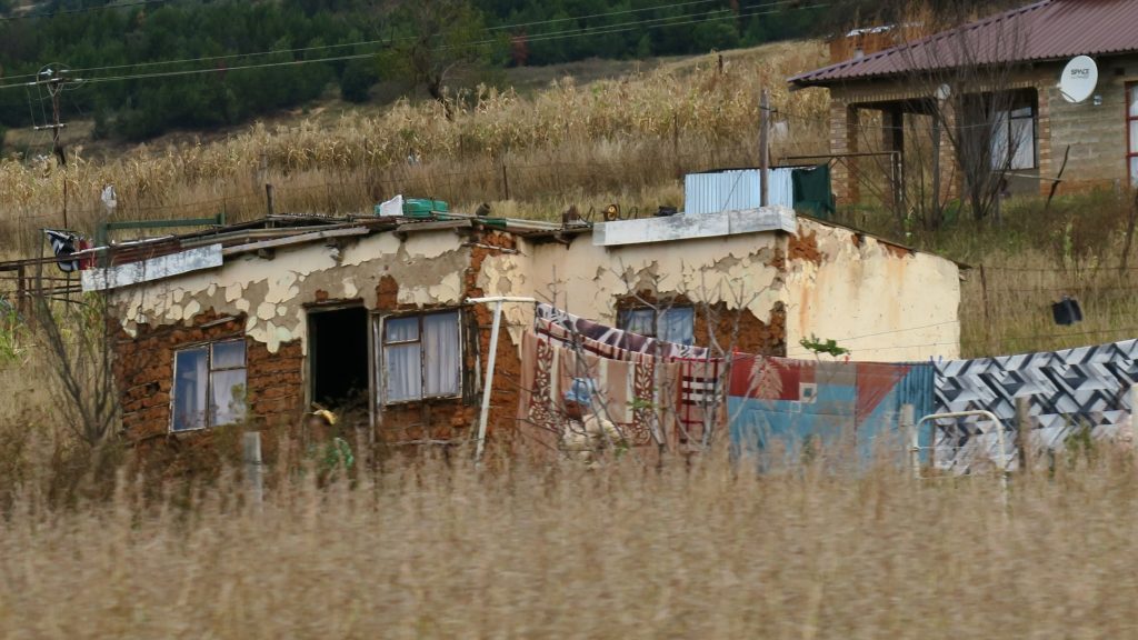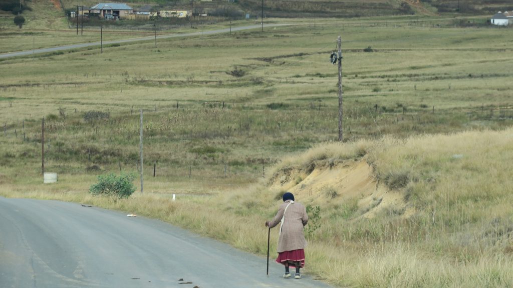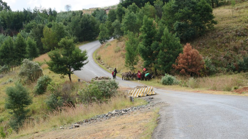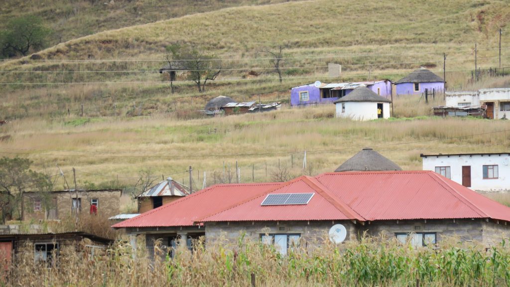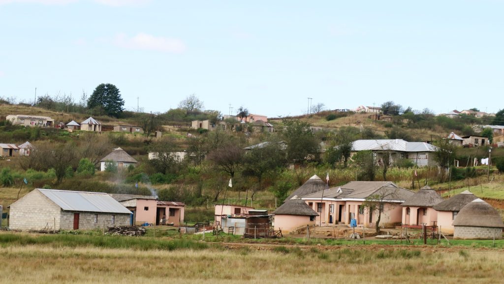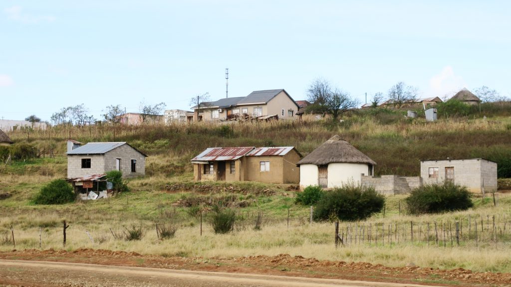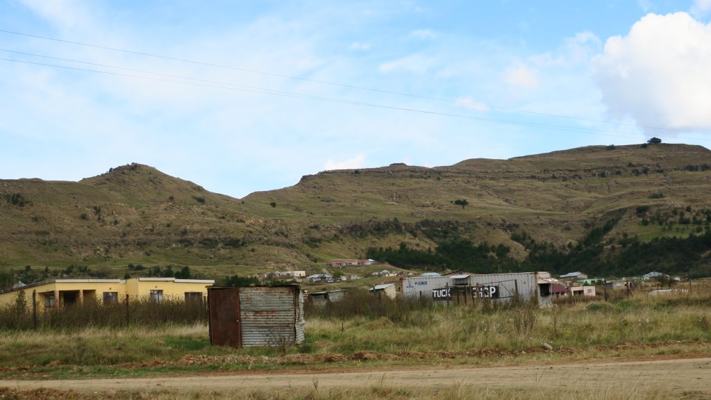 We take the road towards Didima. In these rural areas you have to drive very carefully – children and animals are all over the place and, if that is not enough, unmarked speed bumps appear out of nowhere. The speed limit (that is, if there is one visibly displayed) is usually much higher than these speed bumps are built for – the intention is for you to slow down where children may be crossing. So if you are approaching some built-up area (and it could be a very small settlement) slow down because your car suspension will regret it! Due to recent flooding, some places in the road higher up in the mountain have lost one side of the road that slid down-hill but it is all well-marked. But the drive is not as hair-raising as it may sound. The area is so, so beautiful – small rivers running amongst the green Drakensberg foothills with small settlements spread here and there. Your soul feels nourished by what your eyes see.