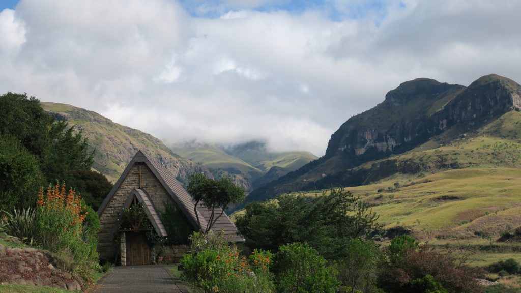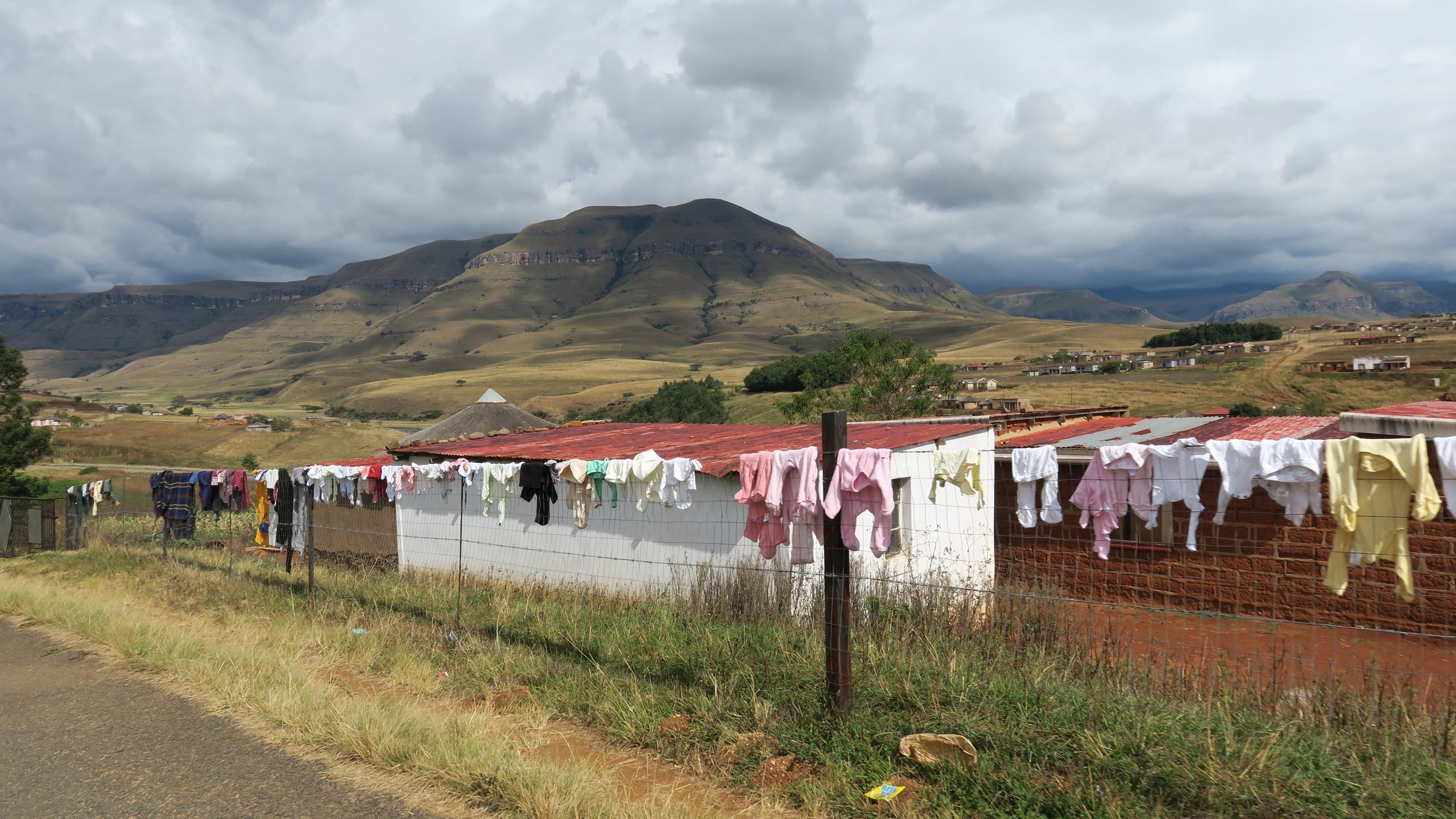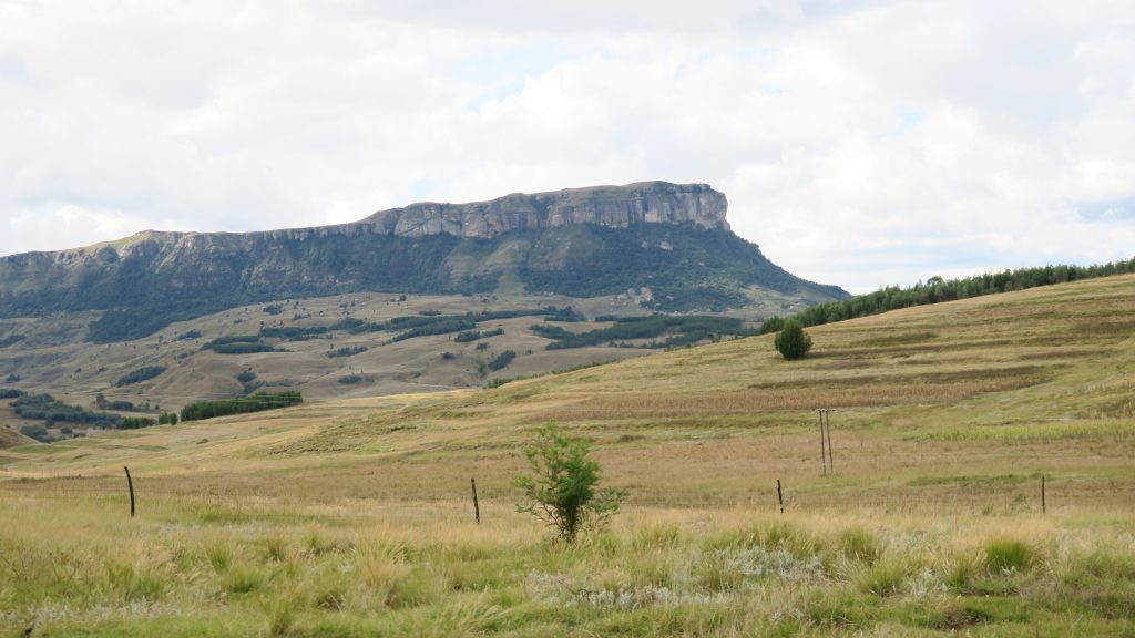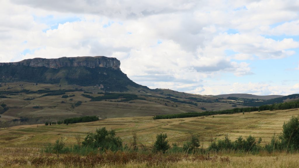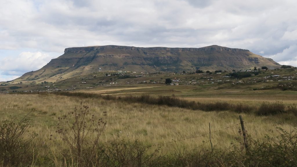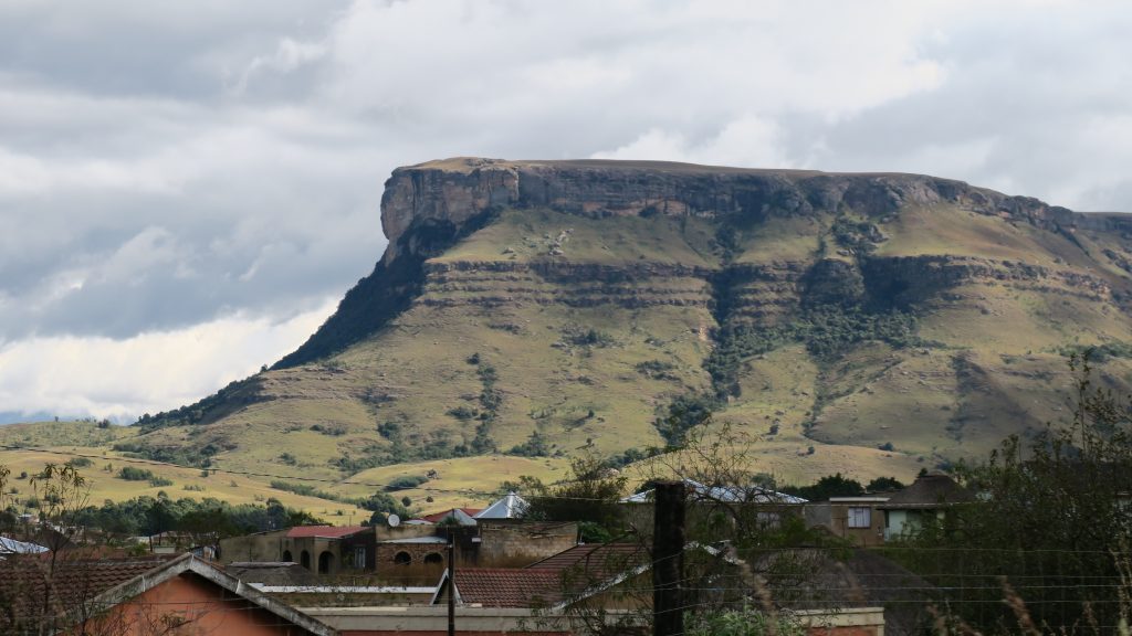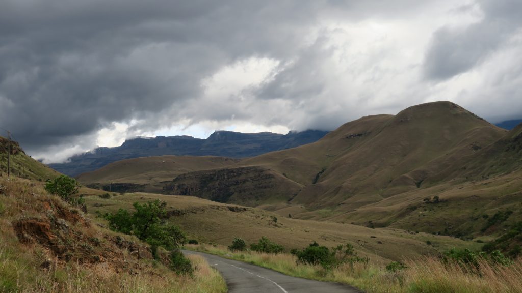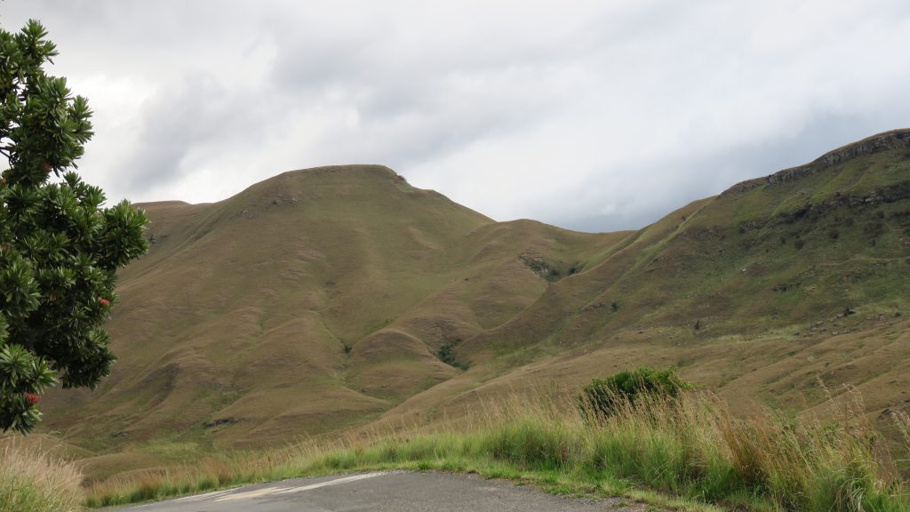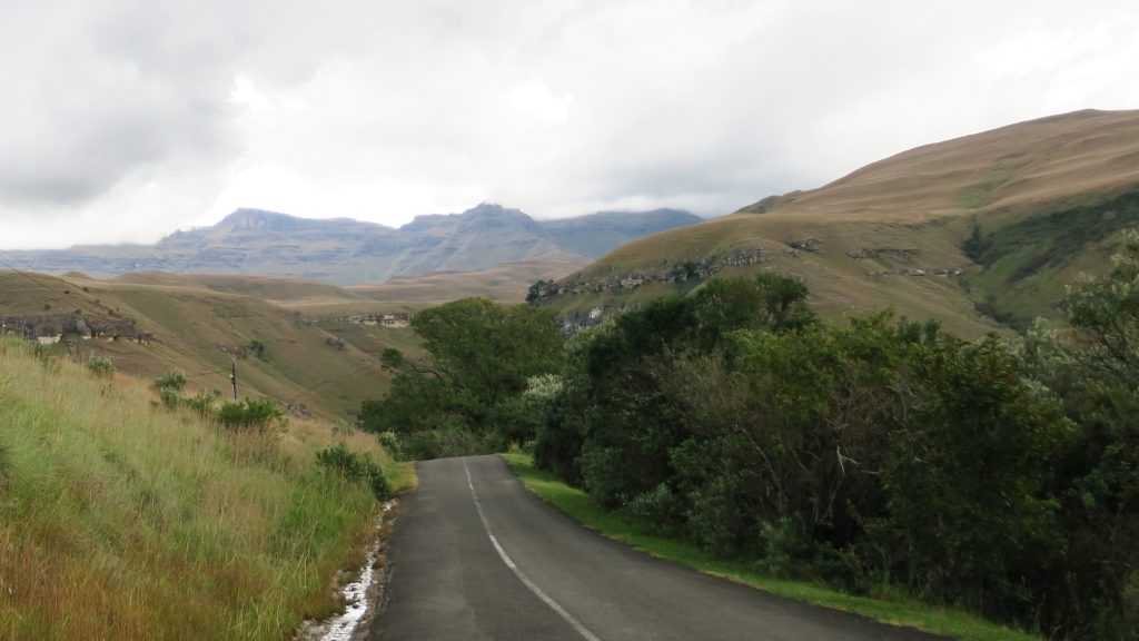 My navigator finds a nice guest house, Hutton Heights Lodge, in Newcastle. Anette is a Genius member of Booking.com and they always offer her upgrades for a discount. It is raining and we spend the remainder of the afternoon in our well-equiped room or in the dining room. The next morning we enjoy our included breakfast and then go shopping nearby for the two nights we intend to spend in the Drakensberg. Newcastle is a big town and we can shop at a modern Woolworths.