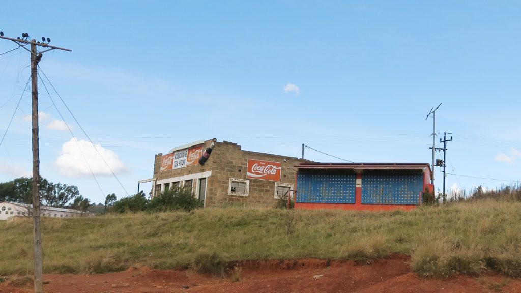 We leave the Kruger National Park via the Malelane gate and take the R38 to Barberton. There are many well-kept farms along the road specialising in sub-tropical produce. This road is worn and there are many dangerous potholes. We make it to Barberton at less than 80 km/h. We do not drive through Barberton but continue with the R38 to eManzana (or Badplaas). There are many commercial forests we pass through and it is a pleasant drive. eManzana is the home of a popular hot water spring and resort but we do not have time to pay it a visit. From the outside it looks like it is still in good condition. After refueling, we continue on to Carolina. The environment is changing to one where a lot of coal is mined (like in many parts of the province of Mpumalanga). Carolina is black with coal dust from the many coal trucks that pass through.