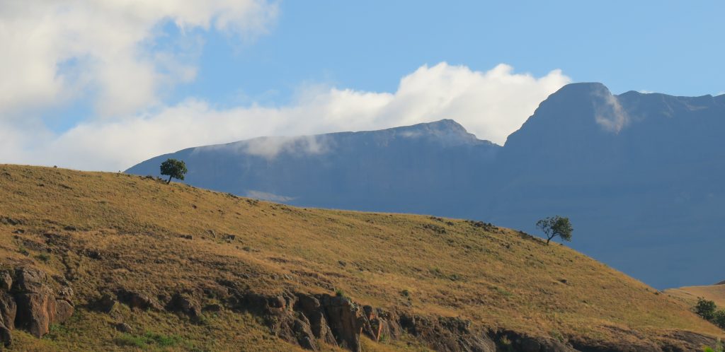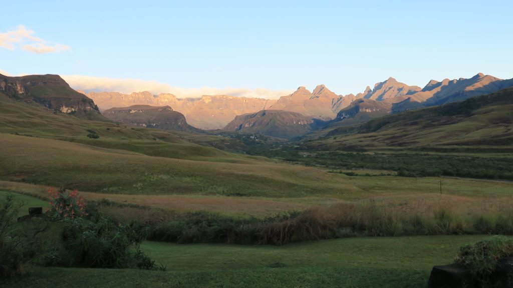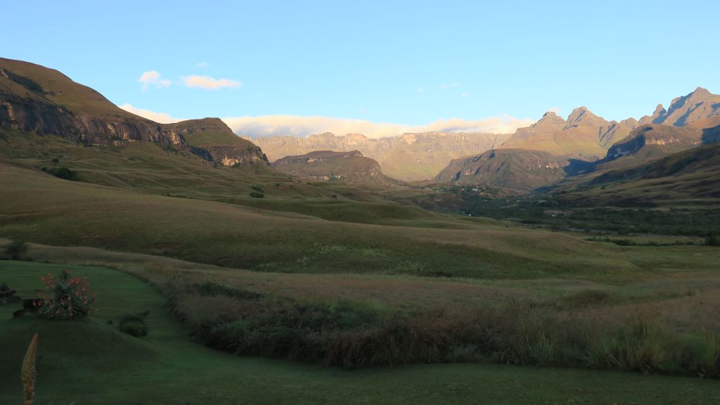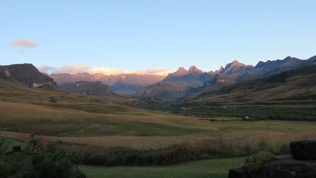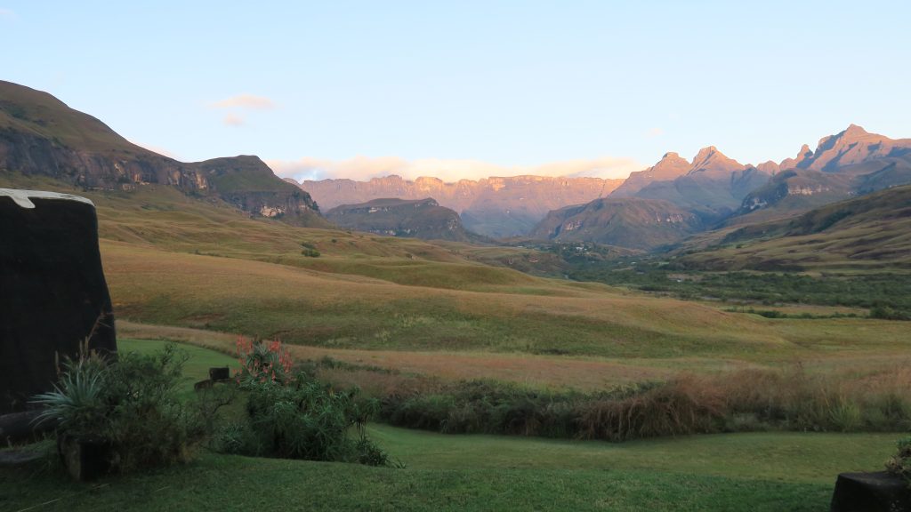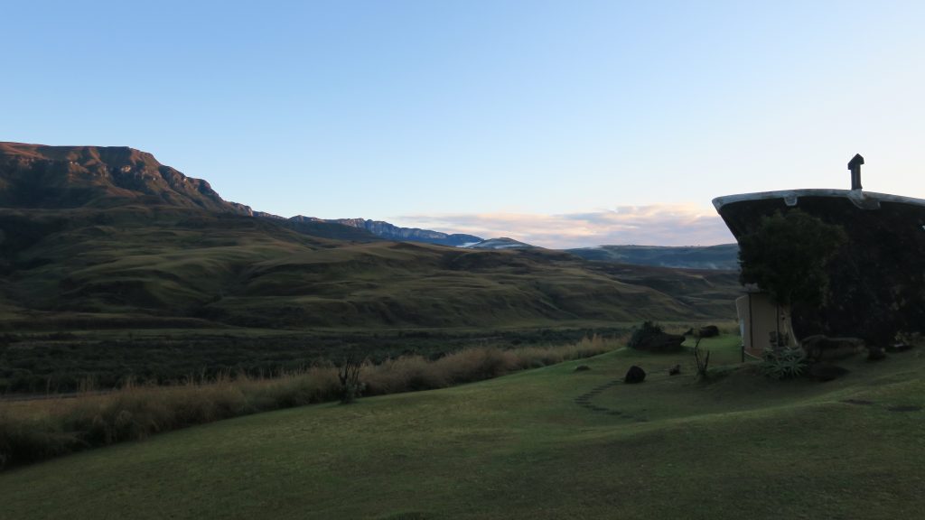 But you have to see the view towards Cathedral Peak – it’s mind-blowing! The mountain peak towers over Didima and who-ever chose this site knew what he or she was doing. Between the camp and the mountain is a stream that you can hear running. Our bed (as is the case with most of the chalets) has a beautiful view but we got out early in the morning onto the lawn where we just assimilated the quiet view with some fog over the stream and the birds chirping away. You can just sit there the whole day although there are many things to discover including many hiking trails.